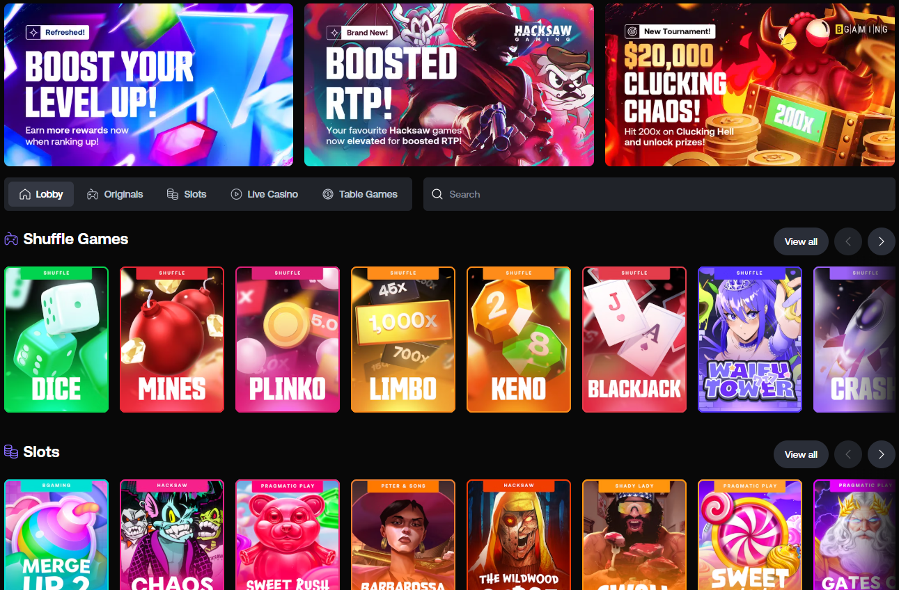 You can contact Shuffle’s customer support through the Live Chat feature, which is available on their website. They typically respond within 2 minutes.